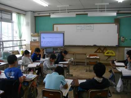 3組は,チャレンジ走に取り組んでいます。毎回積み重ねることで少しずつ記録を伸ばすことができています。5年生は,算数に取り組んでいます。