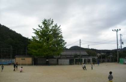 運動場で遊んでいる子どもたちがたくさんいます。元気いっぱいです。