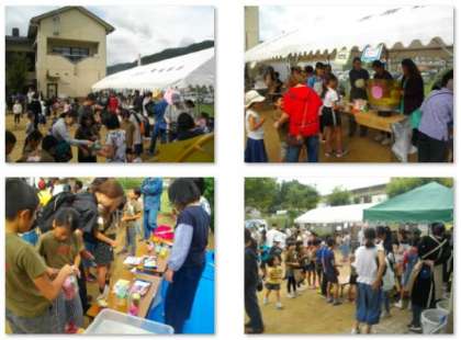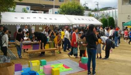 乳幼児親子&子育てサロン「夢わかば」さんによる「ばななくんたいそう」も披露されました。そのあとはたくさんの模擬店で楽しんでいました。