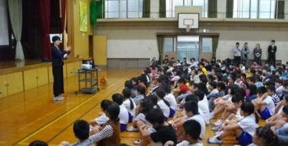 園芸委員会からの活動の報告,保健委員会からの目に関するクイズがあり,最後に,後期代表委員会で活動するお友達の紹介がありました。