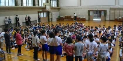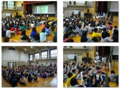校歌を歌ったあと,教頭先生から「みんなのパチパチ」についてのお話を聞きました。自分で時計をみて行動できるところが素敵なところです。