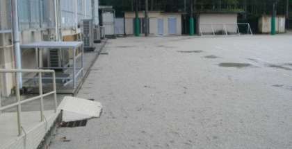 雨上りの運動場の様子です。