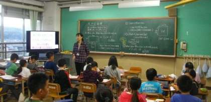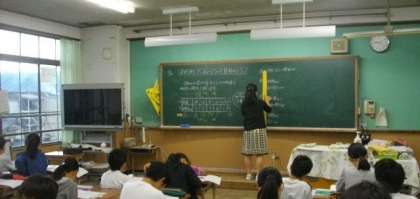 黒板には「めあて」をかいて,この1時間に何をがんばるのかを示しています。最後には,まとめや振り返りを黒板に書きまとめていきます。