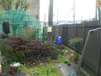 ブロック塀を撤去するために,敷地内の樹木を伐採していただきました。