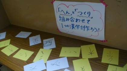 3年生の教室前には,漢字クイズが置いてあります。