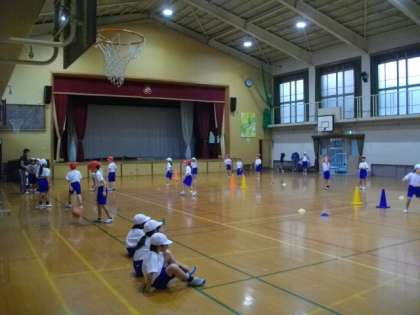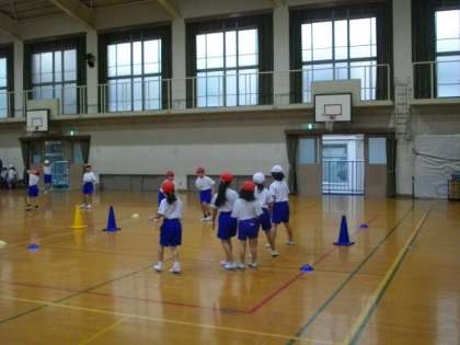1年生が体育館で体育をしています。