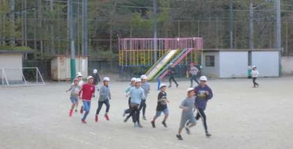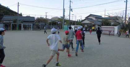 朝マラソンに取り組んでいます。今日は6年生が5年生のお友達をリードしています。