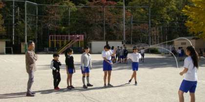 ALTの先生も,昼休みに外に出て遊んでいます。