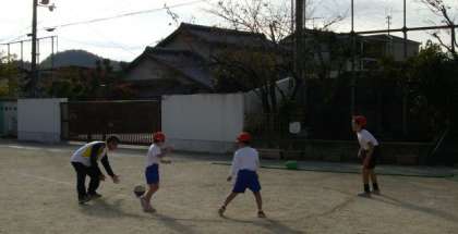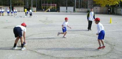 3組は,体育でころがしドッジをしています。ボールの行き来に反応してよけたり逃げたり走ったりと,夢中になっています。