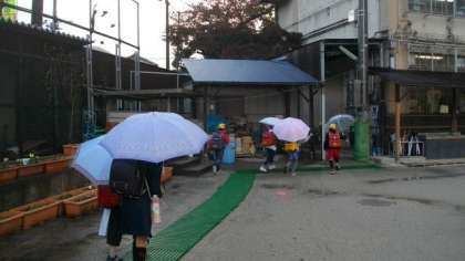 雨がしとしとと降っていましたが,授業が始まるころには,雨がやんでいました。子どもたちが登校してきました。