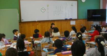 5年生は,学習発表会の練習をしています。いい声が響いています。1年生も頑張っています。