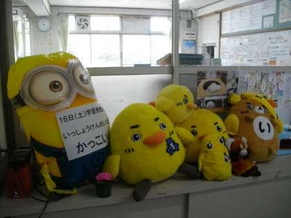 職員室前に,PTAマスコットキャラクター「いちたくん」と,その仲間たちを置いています…