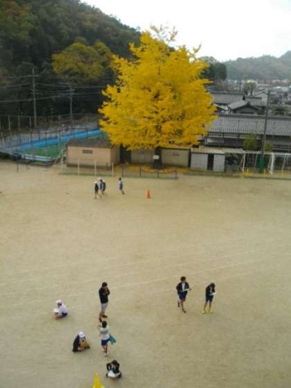 5年生の体育の学習の様子です。いちょうがとてもきれいです。