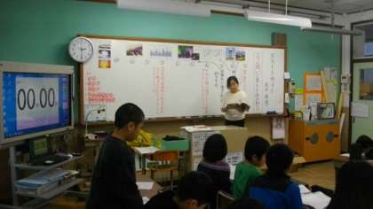 3組は,算数の問題に取り組んでいます。答えをカードの中から探し出して発表をしています。