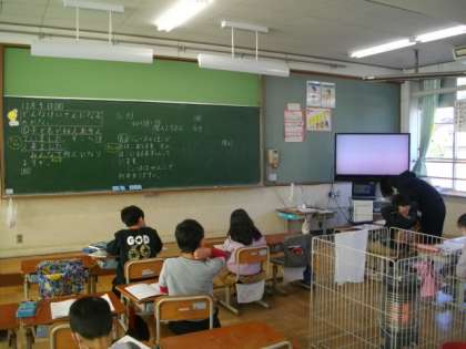 2年生は算数で,問題文を作っています。1年生は,算数で引き算の学習をしています。