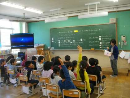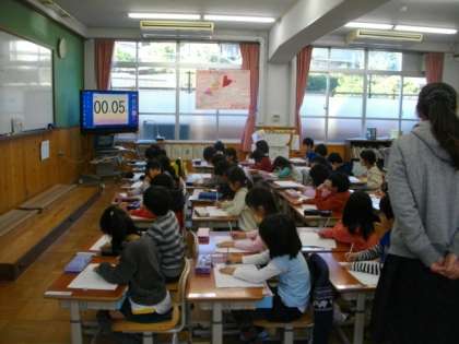 1年生は,「5分間引き算もんだいにチャレンジ」に取り組んでいます。とても集中していました。2年生は,「人形の様子を思い浮かべよう」をテーマに,音楽鑑賞をしています。手の指で,人形の動きをしながら楽しそうに聞いていました。