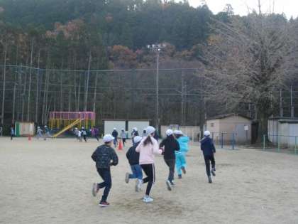 白い息を吐きながら,もくもくと走っています。がんばれ!