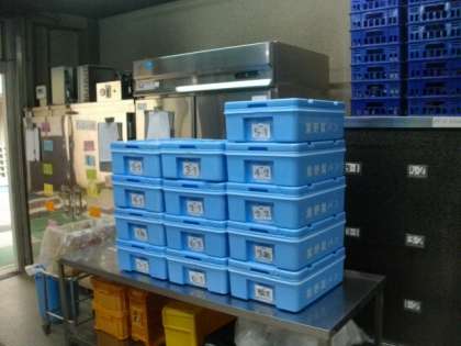13時20分 給食で使った食管等が返却されてきました。残菜は,ほとんどありません。ご飯もほぼ「完食」です。(明日はペロリん賞の取組があります。)