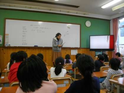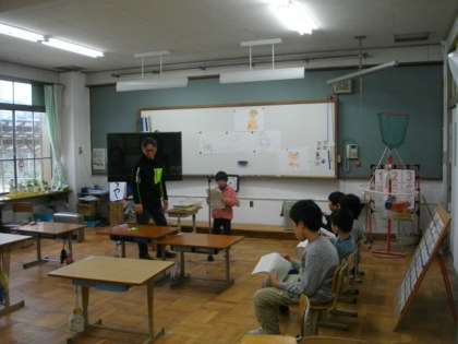1年生は,外国語の学習を進めていました。「ありがとう」や「こんにちは」を,いろんな国の言葉で言っています。3組では,13日(金)に行われる支部育成学級お楽しみ会の司会の練習をしていました。