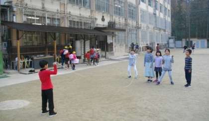 始業前,鬼ごっこやなわとび,ドッジボールをして遊んでいます。