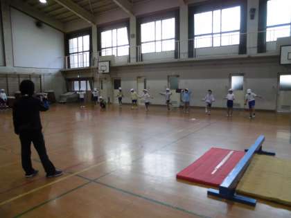 2年生体育科では,なわとびや平均台にチャレンジをしました。寒さに負けずみんなで目標を目指して取組ました。