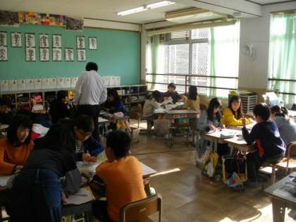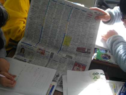 「テレビ番組表には,どんな工夫がされているのだろうか。」5年生は新聞を見ながら自分の考えを交流しています。