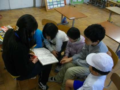 楽しい絵本の読み聞かせの時間です。3年生は算数に取り組んでいます。