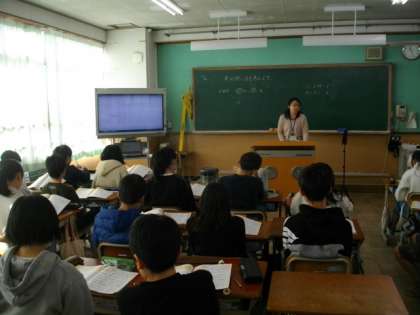 5年生は,算数に取り組んでいます。6年生の教室には美しい歌声が響いています。