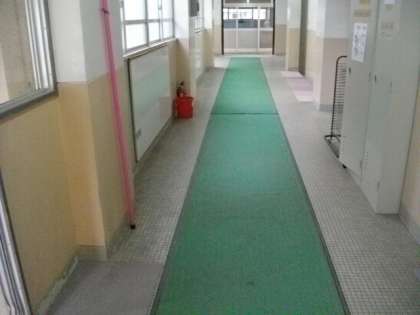 1年生の教室前に,一時的に滑り止めのマットを設置しました。