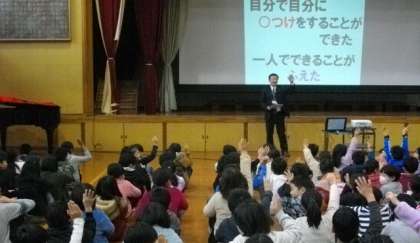 校長先生からは,この時期に出会う日本の伝統文化に触れ,一つ一つに意味があったり願いが込められたりしていることについてお話がありました。また,「こつこつ」「パチパチ」「にこにこ」を大切にして生活ができたか,「自分で自分に○つけをすることができたか」「一人でできることがふえたか」などについてもお話があり,たくさんの子どもたちが手を挙げていました。