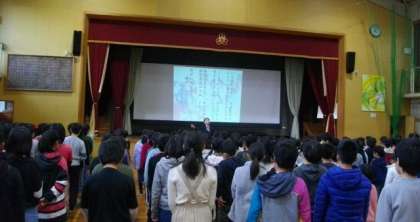 校歌を歌ったあと,そのあと西田校長先生のお話をききました。