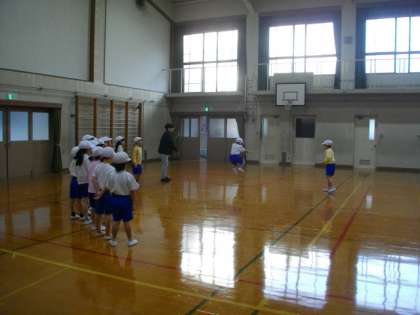 1年1組は,大縄跳びに挑戦しています。