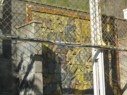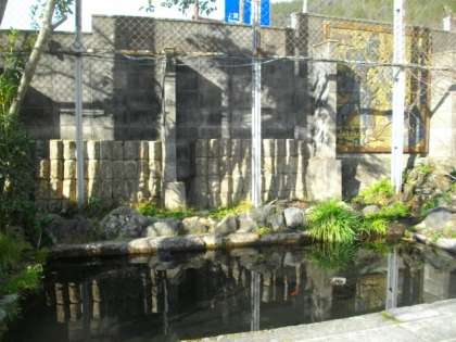池の周りには,卒業記念作品が飾られています。