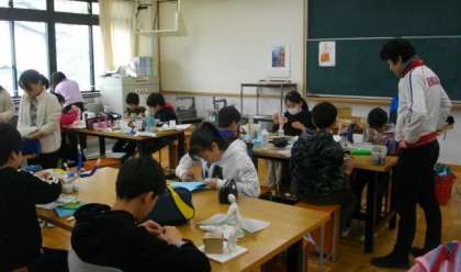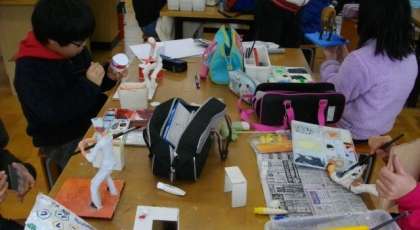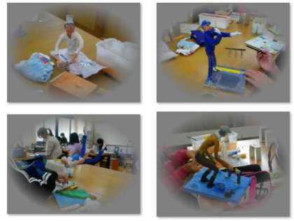 6年生は,図画工作科で,立体作品の制作に取り組んでいます。将来,ついてみたい仕事をテーマに,丁寧に取り組んでます。