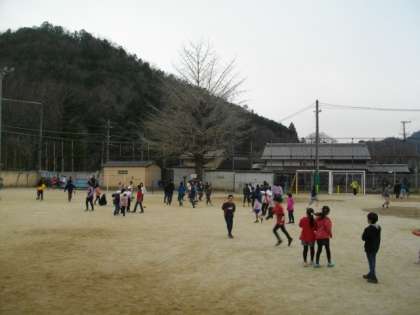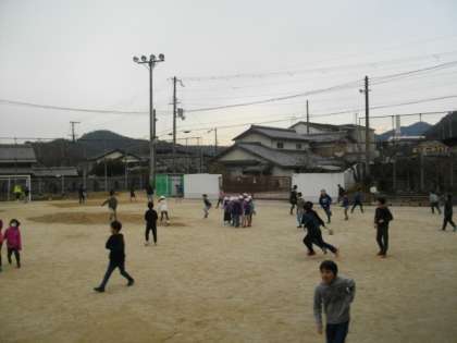 たくさんの子どもたちが外で遊んでいます。
