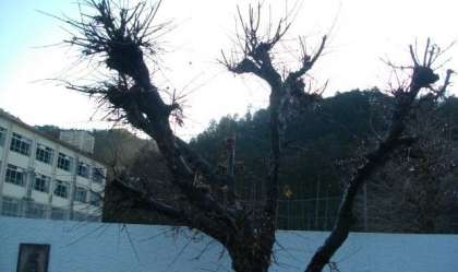 もみじの木についた水滴が,太陽の光に照らされて真珠のようなきらめきをはなっています。