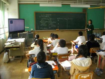 4年生は,音楽鑑賞を進めています。3組は,校外学習の予定で「いつ」「どこに」行くのか,「何に乗っていくのか」「どんな活動をするのか」などについて,地図をみながら確認しています。