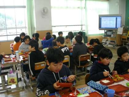 6年生は昼食に中学校給食を試食しました。子どもたちは慣れない弁当箱を受取り,ドキドキしながら蓋をあけました。「おいしそう」「おかずが4種類も入っている」「沢山あって食べ切れるかな」と歓声があがっていました。食後には「中学校入学したら注文する」「おいしかった」など,感想を友達と交わしていました。6年生にとって中学生気分を味わった昼食でした。