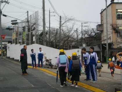 チャレンジ体験で来校している中学生が,今日も校門前に立って声をかけてくれました。