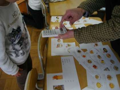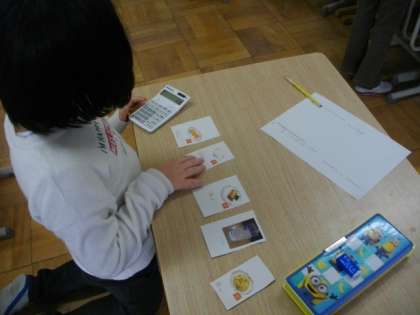 3組では,条件を変えて,電卓を使いながら買い物をする練習をしています。