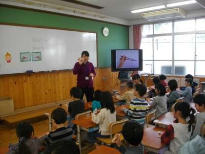 6年生は,卒業式に向けて,二部合唱の練習をしています。1年生は,おはしの持ち方を学習しています。