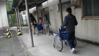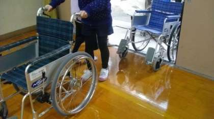 今日は,市原寮様にお世話になり,車いすに乗車する体験を行いました。
