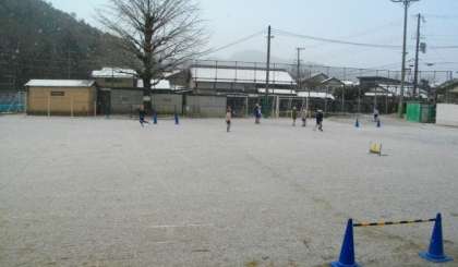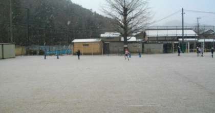 1時間目が始まったとたん,視界が遮られるほどの雪がさーっとふりました。運動場は真っ白に。
