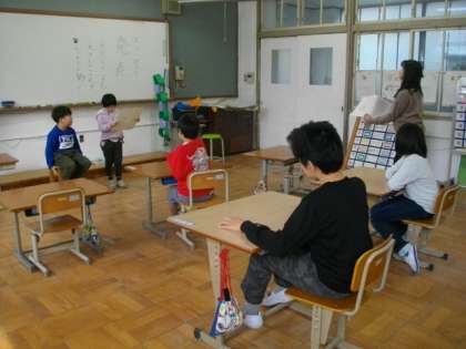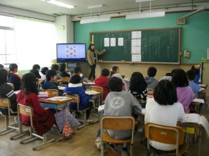 3年生は,ことわざについて調べています。3組は,お友達の作文発表を聞いています。