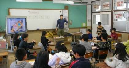 5年生は,外国語活動で,on や in を使ってもののある場所を表現をしていました。3年生は,社会科で,火事が起こる原因について話し合い,消防局のWebページで確かめていました。