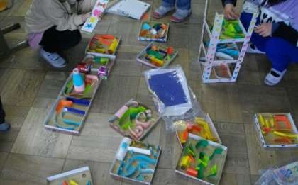 ビー玉がうまくころがるように,何度も試しながらコースを作っていきます。