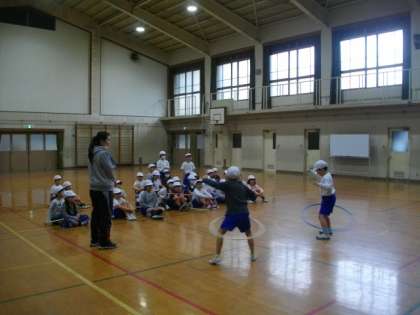 1年生は,体育でフラフープを使った運動に取り組んでいます。