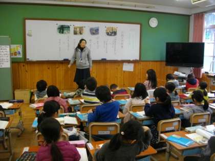3組は校外学習に向けて準備をしています。1年生は,「たぬきの糸車」の音読練習をはじめました。