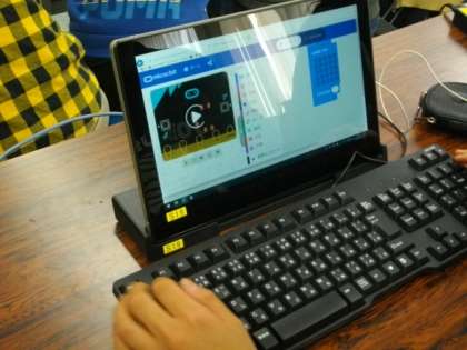 6年生がマイクロビットを使ってプログラミングに挑戦しています。