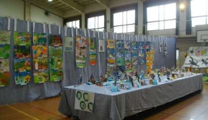 子どもたちが図画工作科で制作した,版画,立体作品などを一堂に集めた図工展を市原野小学校体育館で開催しています。